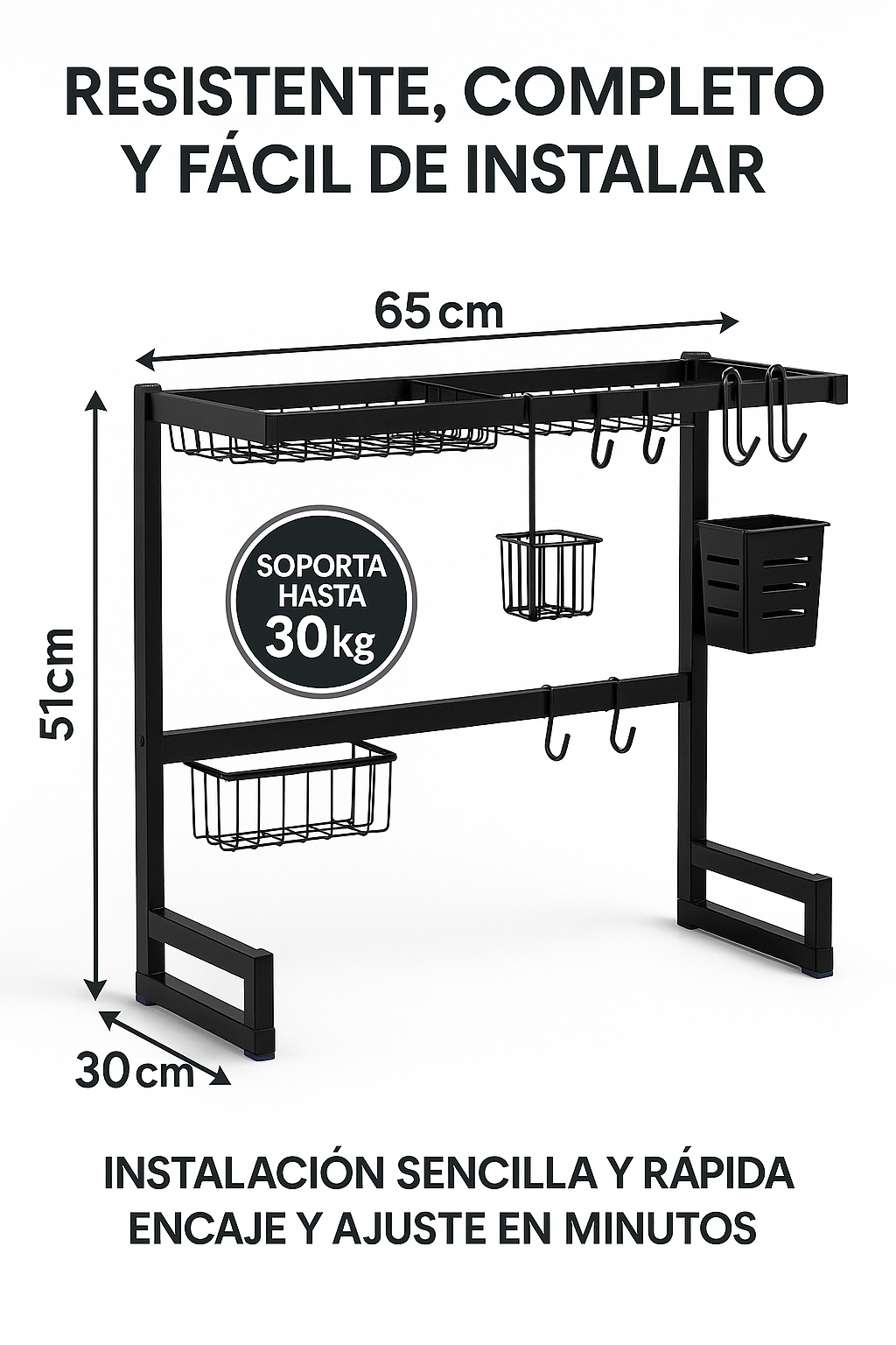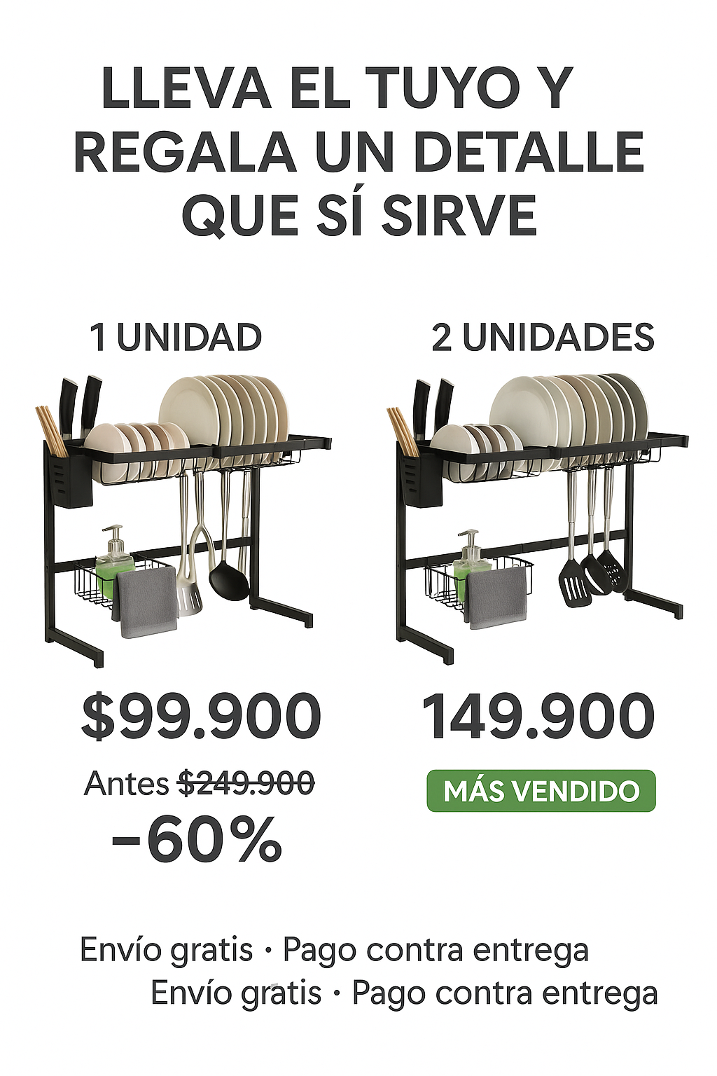 ✅ Se instala sobre el lavaplatos y despeja el meson al instante. Cocina con más aire y menos cosas en medio.